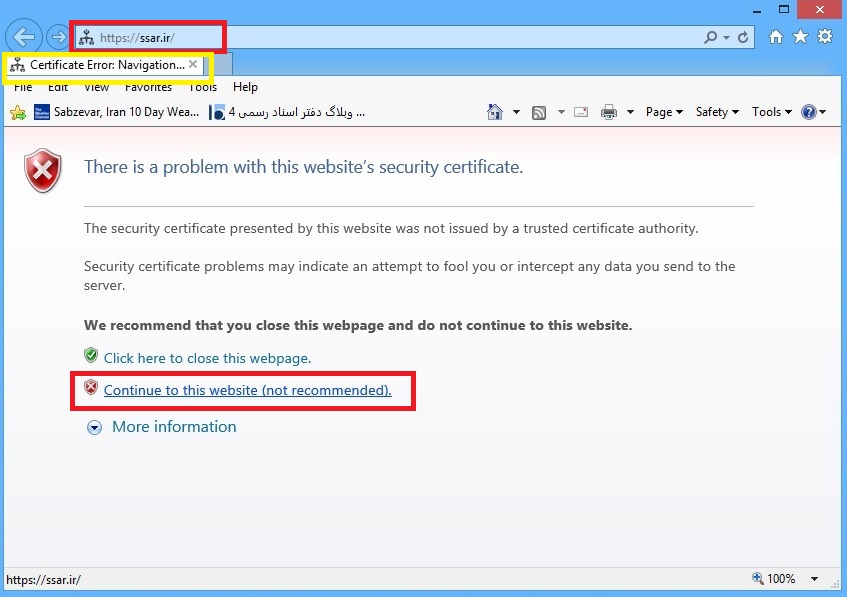 آموزش جامع و تصویری رفع certificate error در مرورگرهای اینترنت اکسپلورر ۷ و ۸ و ۹ و ۱۰ و ۱۱ در ویندوزهای ۷ و ۸ و ۸.۱ و ۱۰ برای سامانه ثبت آنی