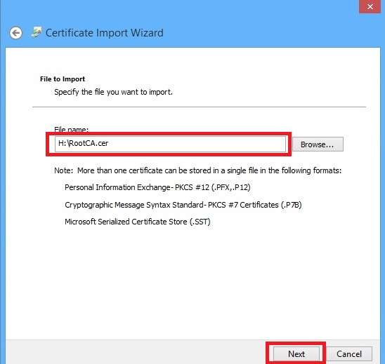 نکته: روش دوم نصب دستی گواهی ریشه بعد از دانلود می باشد که بایستی به پوشه Trutsted Root Certificate Authorities اضافه شود و روش سوم نیز بایستی دستور certmgr.msc را در run تایپ نموده و پوشه Trusted Root Certificate Authorities را یافته و گواهی ریشه در این پوشه Import  نمایید.(روشهای دوم و سوم صرفاٌ جهت افزایش اطلاعات بیان شد)