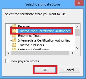 و از کادر باز شده پوشه Trusted Root Certification Authorities  کلیک نموده و آنرا انتخاب نمایید.