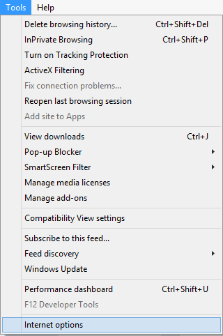 سپس مروگر اینترنت اکسپلورر را باز کرده و روی منوی Tools  کلیک نموده و آخرین گزینه Internet options  را انتخاب نمایید.