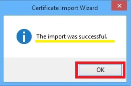 گواهی با موفقیت به لیست گواهی ریشه مورد اعتماد اضافه شد. روی Ok کلیک نمایید.